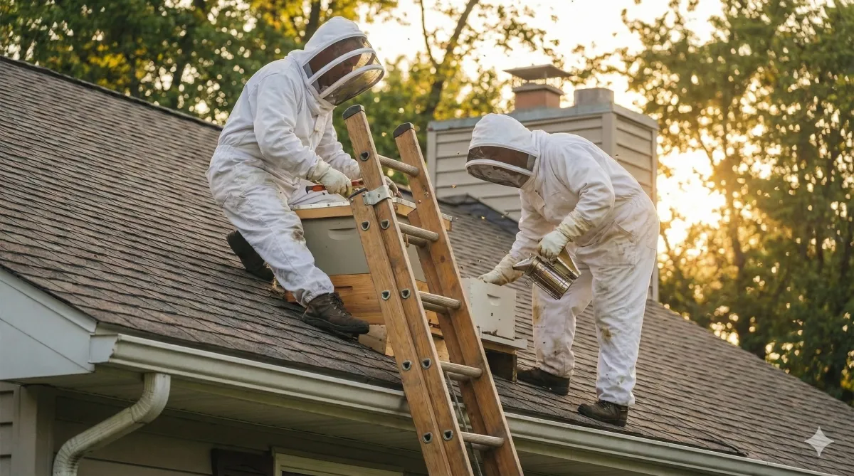 We start with a free inspection to assess the hive's location in your structure (walls, sheds, decks, or fences). Unlike standard pest control, we carefully remove the bees alive. We typically schedule removals close to sunset; this allows us to gather the foraging bees that return to the hive at night, ensuring the whole family stays together. Once removed, we also help protect your home to prevent future colonies from moving in.